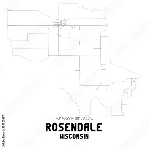 Obraz premium Rosendale Wisconsin. US street map with black and white lines.
