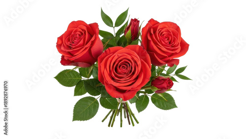 Fototapeta premium Roses in a bouquet with green leaves arranged for a special occasion in a...