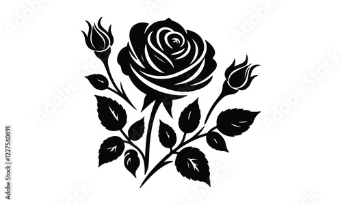 Obraz premium Roses tattoo, Black roses vector, Black silhouette rose, silhouette rose.