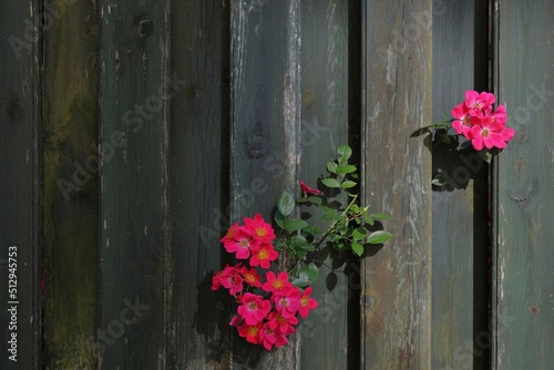 © Queen, Fototapeta premium Roses with the shabby wooden planks in the background