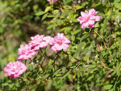 Obraz premium Rosier grimpant, pompon de Paris, petites fleurs doubles rose pâles et...