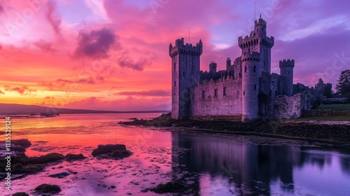 © Sarina, Fototapeta premium Ross Castle at Sunset: A Fairytale Irish Landscape