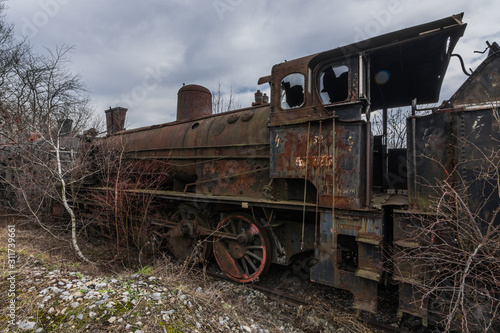 © thomaseder, Obraz premium rostige alte lokomotive auf einem gleis
