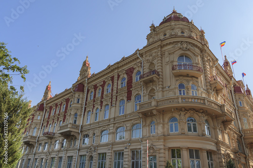 © evgenii, Naklejka premium ROSTOV-ON-DON, RUSSIA - June 20, 2018: FIFA World Cup 2018 Host City Rostov-on-Don place ,Sights of the city of Rostov-on-Don, the building of the city administration of the city of Rostov-on-Don
