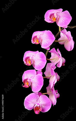 © EMrpize, Fototapeta premium rosy beautiful orchid branch isolated on black background