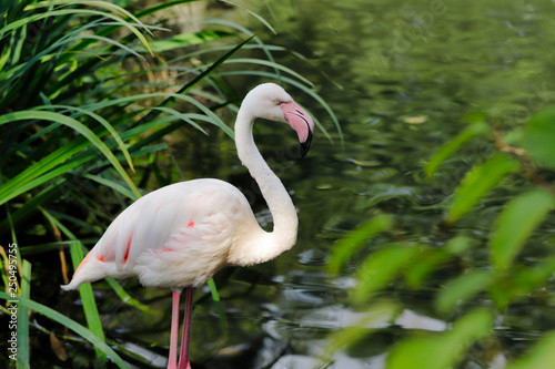 Fototapeta premium Rosy colored flamingo waterbird wading in the river