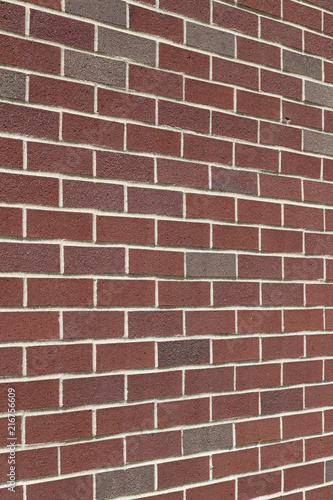 Fototapeta premium Rosy pink and gray traditional brick wall background (angle view)
