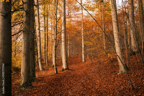 Obraz premium Rot gold gefärbter Buchenwald im Herbst