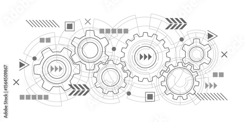 © Aliaksandr, Obraz premium Rotating gears. Futuristic circle elements. Engineering industry. New technologies. Vector illustration