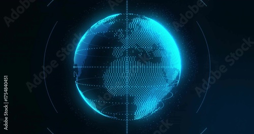 Fototapeta premium Rotating holographic globe displaying point cloud, grid lines in data space,...