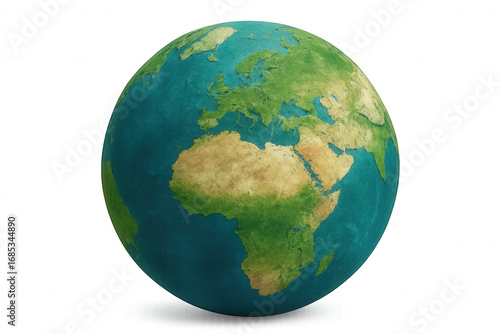 © Krtola , Fototapeta premium Rotating planet earth 3d render, featuring europe and africa landmasses, transparent background suitable for global educational visualizations