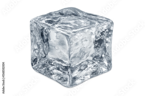 Obraz premium Rotating transparent ice cube casting cool reflections, highlighting...