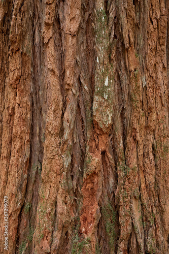 Obraz premium rotbraune zerfurchte Baumrinde mit Strukturlinien