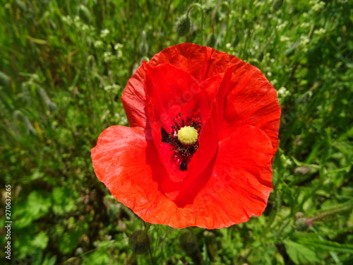 © Sandra, Fototapeta premium rote mohnblume im weizenfeld