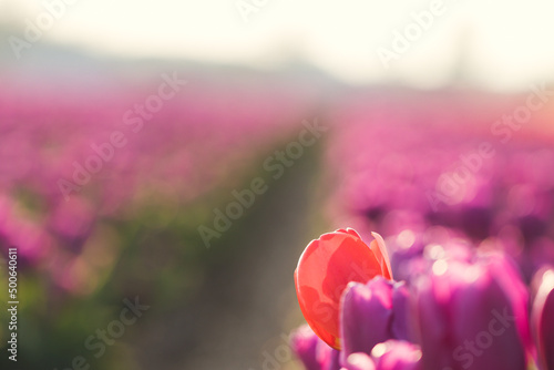 Fototapeta premium rote tulpe in lila Tulpenfeld