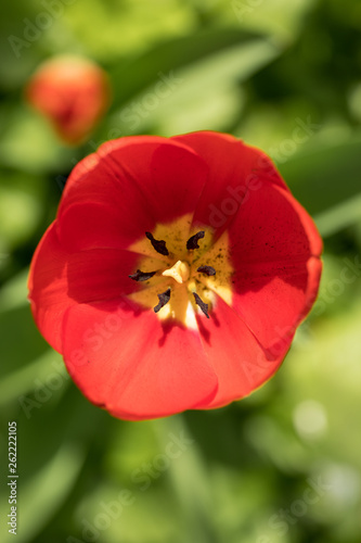 © MedienPcMarcel, Fototapeta premium rote Tulpe vor grünem Gras
