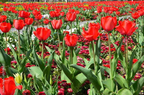 Fototapeta premium Rote Tulpen in Frühlingsbeet