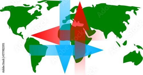 Obraz premium Rote und blaue Pfeile auf grüner Landkarte