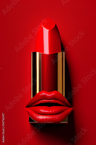 Obraz premium roter Lippenstift auf abstrakten Hintergrund, Kosmetik Konzept - Generative Ai