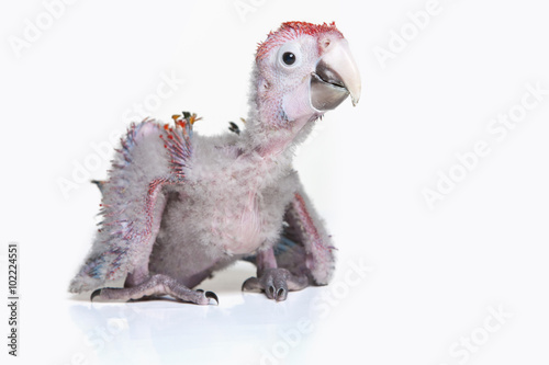 © Mitmachfoto, Fototapeta premium Rotes Ara-Küken im Studio aufgenommen