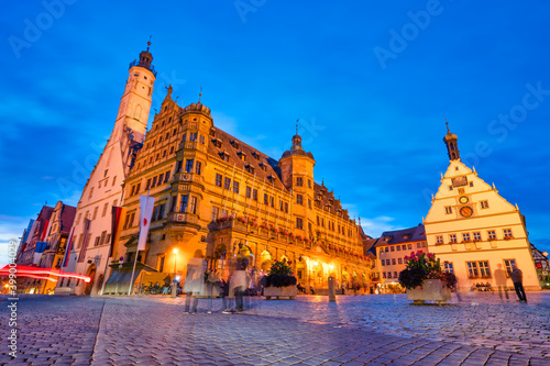 Fototapeta premium Rothenburg ob der Tauber market square at blue hour. Germany