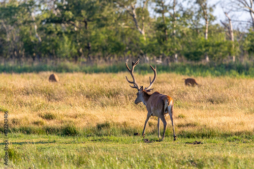 © Karl, Fototapeta premium Rothirsch, Hirsch auf einer Wiese bei Zingst an der Ostsee.