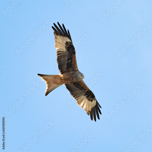 Fototapeta premium Rotmilan im Flug vor blauem Himmel
