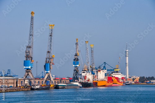 © vlaru, Fototapeta premium Rotterdam sea cargo port skyline