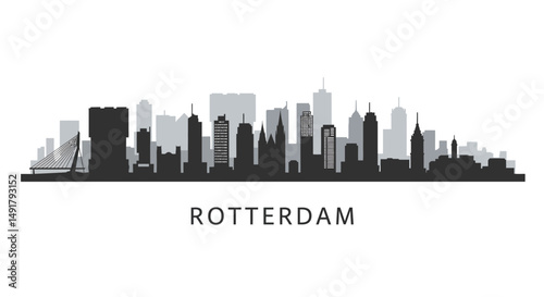 Naklejka premium Rotterdam Skyline with Netherlands Cityscape Silhouette.
