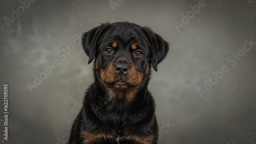 © AIArtistry, Obraz premium Rottweiler Displayed on a Stone Textured Gray Surface