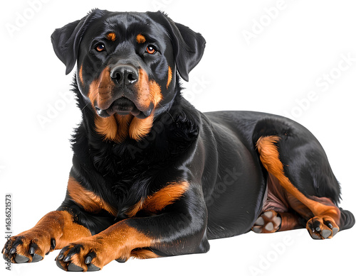 Obraz premium Rottweiler Lying Down Relaxed, High Quality, isolated on transparent...