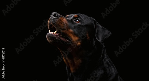© David, Obraz premium Rottweiler Portrait Regal Canine against Dark Backdrop with Powerful Breed.