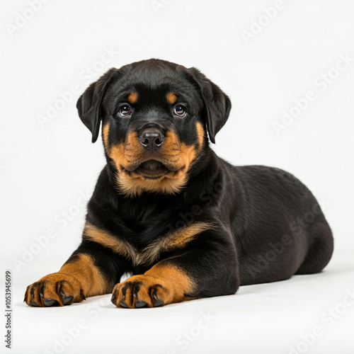 Fototapeta premium Rottweiler Puppy Dog, Cute Playful Pet, Isolated on White Background