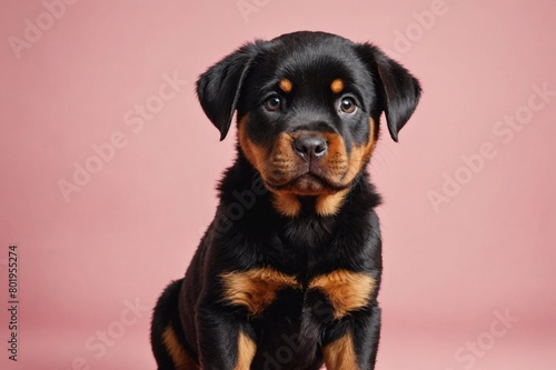 Fototapeta premium Rottweiler puppy looking at camera, copy space. Studio shot.