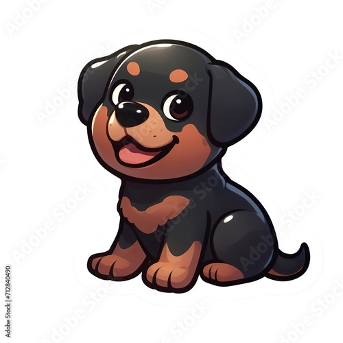 © Denis Agati, Fototapeta premium Rottweiler puppy sticker on white background. Vector illustration. Isolated on transparent background PNG.