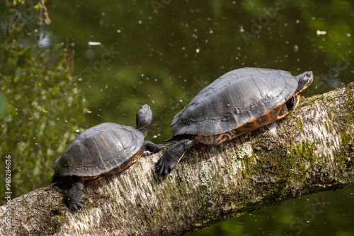 Obraz premium Rotwangen-Schmuckschildkröten (Trachemys scripta elegans) auf einem...