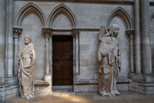 © FreeProd, Fototapeta premium Rouen, France, august 2024, Interior of Rouen Notre-Dame Cathedral, Statues High quality photo