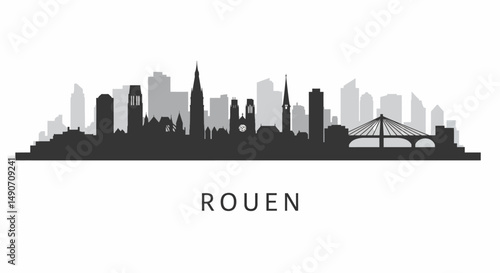 Naklejka premium Rouen Skyline France Cityscape Silhouette.