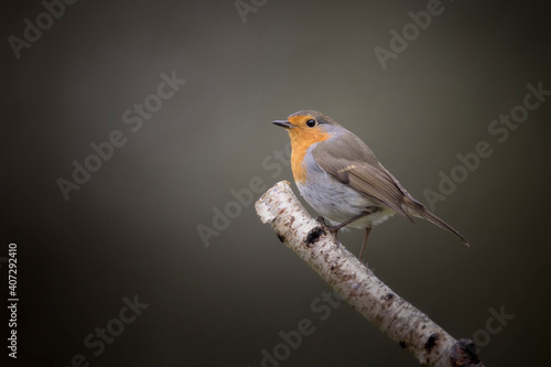 Fototapeta premium Rougegorge familier Erithacus rubecula perché sur branche de boulot