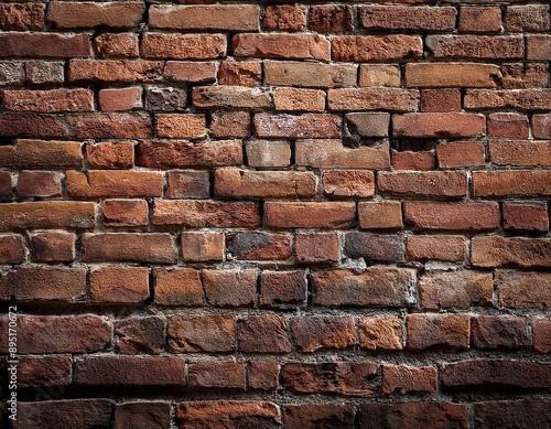 © Daniel, Obraz premium Rough, aged brick wall with weathered textures and natural imperfections.