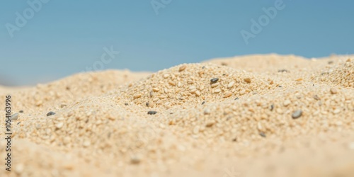 Fototapeta premium Rough and gritty beige sand texture background with tiny grains, background, pattern