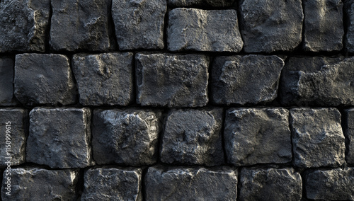 Fototapeta premium Rough black stone wall texture with seamless appearance, ideal for backgrounds
