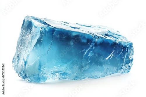 © MS.T, Fototapeta premium Rough blue ice block with frosty surface and natural cracks isolated on white background, cool textured frozen cube