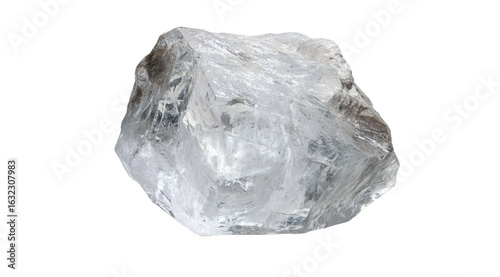 Fototapeta premium Rough, clear crystal, likely quartz, cube-like shape