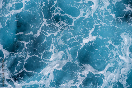 Fototapeta premium Rough deep turquoise and blue Mediterranean sea with white foam texture...