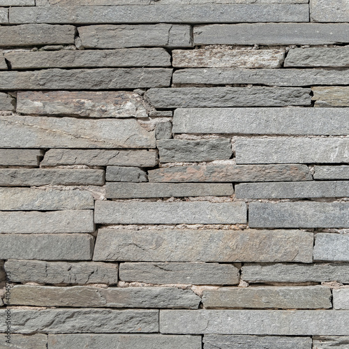 Obraz premium rough grey slate stone wall closeup, textured pattern background