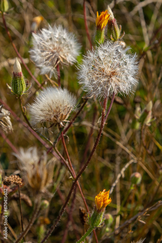 © Oleh Marchak, Obraz premium Rough Hawksbeard Crepis biennis plant blooming in a meadow