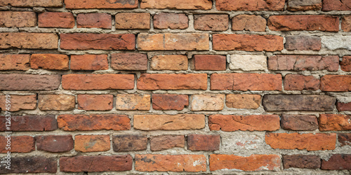 Fototapeta premium Rough industrial brick texture with uneven red and brown bricks, exposed mortar lines, and slight grunge details