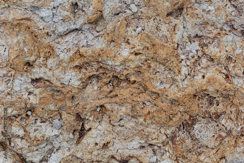 © Tilok, Naklejka premium Rough, natural stone texture with earthy tones, perfect for rustic backgrounds and architectural design elements.