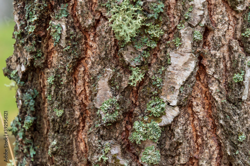© Ieva, Fototapeta premium Rough pine trunk with lichens